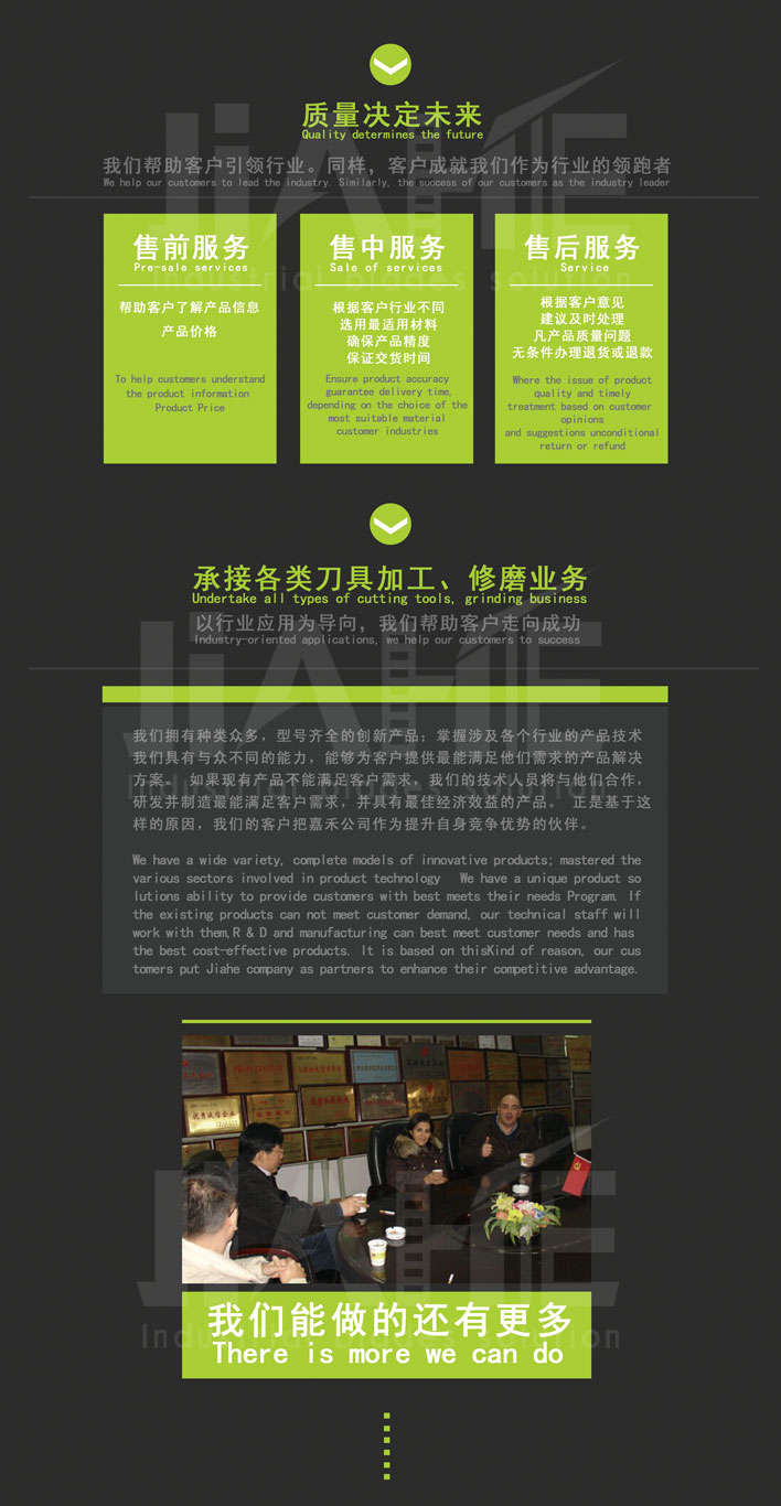 嘉禾機(jī)械科技(馬鞍山)有限公司地處蘇皖兩省交接,長(zhǎng)三角區(qū)域安徽東大門(mén),素有“鋼城”之稱(chēng)的馬鞍山,中國(guó)刃具之鄉(xiāng)的博望鎮(zhèn),距南京國(guó)際機(jī)場(chǎng)僅不足23公里,地理位置優(yōu)越,交通非常便利。目前固定資產(chǎn)上千萬(wàn)元,擁有大小客戶(hù)數(shù)百家。我們憑借優(yōu)良的設(shè)備,精湛的工藝,嚴(yán)格的檢驗(yàn),完善的售后服務(wù),力求產(chǎn)品質(zhì)量精益求精。